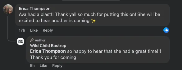 Be the first to know about events, deals, and playtime fun at Wild Child in Bastrop.